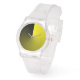 Featuring a sleek design, this unisex timepiece offers a clean 3D effect black and yellow dial with simple, minimalist hands and a comfortable clear strap.