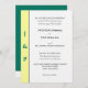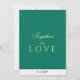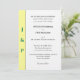 Summer tropical beach destination wedding vibe. Minimalist pastel yellow border on front with couple's Monogrammed Initials in green. Bride and Groom Names in uppercase black typography. Backside has Wedding Date Numerals in black against white black geometric rectangle. Together in Love is written in white against solid green background. Original Design © TamiraZDesigns.