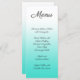 Create your own minimalist design white to bright turquoise ombre wedding menu.