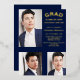 Minimalist typography graduation with gold script text for a graduation of any age or education level. Photo templates via Pixabay licensed under CC0 and must be replaced with your own photos