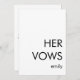 Minimalist Typography Custom Any Colour Her Vows A simplistic, fully customiseable design for the bride's vows, with modern typography. Easily personalise the text, and you can also change the font style, size and colour, as well as the background colours on each side if you wish.