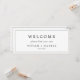 This minimalist typography hanging seating chart welcome header is perfect for a simple wedding. The modern romantic design features classic black and white typography. Customisable in any colour. Keep the design simple and elegant, as is, or personalise it by adding your own graphics and artwork. The card prints on the front and back (double-sided). Please check the collection for the coordinating table number seating chart cards.