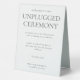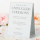 Introducing our exquisite wedding tent sign! Crafted with minimalist lettering script, this enchanting sign carries a heartfelt message. It graciously invites your guests to embrace the beauty of the present moment, urging them to switch off all devices and fully immerse themselves in the joyous atmosphere of your ceremony. With this gentle request, you create a sacred space where love and joy can flourish, free from distractions. Let this board serve as a reminder to treasure every precious moment shared on this special day.