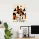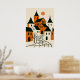 This minimalist orange and black village illustration with charming mediaeval style houses, pointed rooftops and a winding cobblestone street under a warm sun. With its rustic and abstract style, this artwork makes a wonderful seasonal gift for autumn celebrations, Halloween, Thanksgiving and festive occasions, bringing a cosy yet mystical touch to any space.