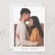 A modern, chic and elegant wedding invitation with custom names with a hand written calligraphy on terracotta. The front of the invitation features a photograph of the couple.