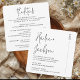 This all-in-one design is not just a statement of style but also a practical solution for your wedding stationery needs. Combining essential details like ceremony information, reception specifics, and RSVP instructions on a single card, it streamlines your planning process while ensuring a seamless guest experience. The handwritten-inspired script adds a touch of warmth and personality, perfectly complementing the modern, formal design.