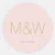 Minimalist Wedding blush pink gold monogram Classic Round Sticker