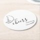 Add a refined and memorable touch to your reception with this elegant minimalist wedding coaster. Featuring a soft neutral background, delicate line art, and the graceful script “cheers,” this design brings a subtle sophistication to your bar or table setting.