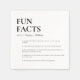 Entertain your wedding guests with some fun and interesting facts about your love story with these wedding fun facts paper napkins. The design features a minimalist design with a script calligraphy heading. The script heading is an image that cannot be edited. All of the other text is fully editable. For more advanced customisation of this design, simply select the "Customise It" button above.