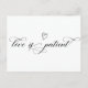 Event postponed announcement template - simple change of date postcard. Modern minimalist black and white Unsave the Date postcard. Feature an elegant lovely handwritten typography script (with heart shape) design with text „Love is Patient”. #3339 If you need help or matching items, please contact me.