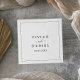 These minimalist wedding paper napkins are perfect for a simple wedding reception. The modern romantic design features classic black and white typography paired with a rustic yet elegant calligraphy with vintage hand lettered style. Customizable in any color. Keep the design simple and elegant, as is, or personalize it by adding your own graphics and artwork. Personalize the napkins with the names of the bride and groom, and the wedding date. These napkins can be used for the wedding reception, rehearsal dinner, engagement party and more!