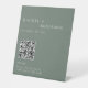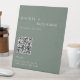 Minimalist Wedding Photo Share QR Code Sage Green Pedestal Sign