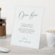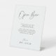 Let your guests know the drinks are on you with this minimalist open bar pedestal sign, perfect for wedding receptions, rehearsal dinners, or engagement parties. Featuring a modern design with simple script text, this self-standing sign is a stylish way to mark your drink station. It's a great alternative to a full bar menu and adds a clear, functional detail to your event decor.