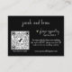 Stylish black & white 3.5 x 2.5 RSVP enclosure card with QR code directing to wedding website.