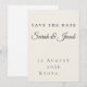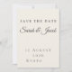 Modern minimalist save the date wedding invitation featuring an elegant script font paired with a clean serif style.