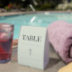 A refined and minimalist wedding table number sign designed with clean modern typography and soft neutral tones. Featuring generous white space, simple layout, and a calm contemporary aesthetic, this table number coordinates beautifully with a modern wedding theme.