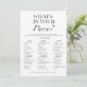 Introducing the "What's In Your Purse?" Bridal Shower Game Card by CaMiDesigns! This stylish minimalist design features a chic black and white theme, perfect for adding a touch of elegance to any bridal shower celebration. Guests will enjoy the fun and engaging challenge of finding various items in their purses, making it a memorable addition to the festivities. Designed with simplicity and sophistication in mind, this game card is sure to entertain and delight.