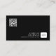 Whimsical, minimalistic, and clean design, independant investment adviser business card design. White square with a custom monogram in black and customisable typography in white and black on a black background. QR code for additional information.