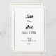 Sleek and modern, these minimalist wedding, Save the Date invitations showcase crisp white and gold with black typography on a clean, neutral backdrop. Designed for the contemporary couple, they blend simplicity with elegance. The refined design lets your love story shine. Fully customisable to match your wedding vision.