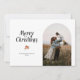 Minimal and clean Christmas photo card featuring a white arch frame with a typography text that says "merry christmas" with a simple illustration of red berries.