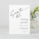 These 5" x 7" save the date cards feature a minimalist design in black letters on a white background with placeholders for the engaged couple names, wedding date, and venue information. The back has a spot to insert your favourite photo with the couple names and wedding date.