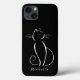 Minimalist white cat on a black background iPhone 13 case. Personalise this elegant phone case with your name.