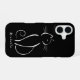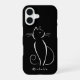 Minimalist white cat on a black background iPhone 16 case. Personalise this elegant phone case with your name.