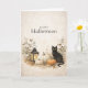 Minimalist White Cotton Stems Eucalyptus Halloween Card