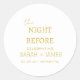 Minimalist White and Gold The Night Before Rehearsal Dinner Classic Round Sticker