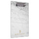Coordinates with the Minimalist White Marble Gold Monogram Business Card Template by 1201AM. A white marble backdrop sets a beautiful tone on this personalised clipboard. Your initial and name or business name are elegantly styled on the front in matte gold for a monogrammed logo effect. Photography and design © 1201AM CREATIVE | www.1201am.com