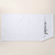 Girly Feminine Minimalist Simple Clean White Monogram Name Signature Script Custom Personalised Summer Beach Towel. This design featuring your first name in a pretty hand lettered style swash tail font signature typography (or calligraphy) on white background. These are easy to customise it. Great stylish feminine housewarming gift, also for birthday, wedding, sweet 16 birthday party, bachelorette party, mother’s day, bridal shower, for graduation party and It’s for the girl who likes simple clean things.