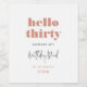 Minimalist pink rose gold and black typography personalised wine bottle label on simple white background. Customise age, name, drink name, short text, and birth year. Perfect for birthday present or party.
