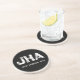 MINIMALIST WHITE THREE LETTER MONOGRAM NAME BLACK COASTER