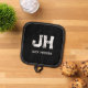 MINIMALIST WHITE TWO LETTER MONOGRAM NAME BLACK POT HOLDER