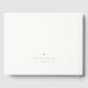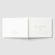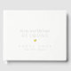 A book of blank pages in which visitors or guests at an event (such as your wedding) sign their names... your own names written in a thin black font style on white and clean background, with the small image of a faux gold heart of love... an elegant item for your 'best day ever' memories
