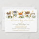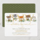 This lovely Baby Shower By Mail invitation features adorable illustration of sweet woodland animals and elegant watercolor greenery in green and gold