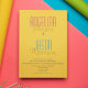 Minimalist, modern, trendy, fun, contemporary, yellow wedding invitation, with simple calligraphy script.