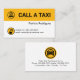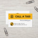 Cover features a yellow taxi colored layer and a white piece design. At the top beside the facial icon logo lies the business name "CALL A TAXI" and your prestigious name. You can change the business name to suit your own needs. At the base beside the handphone icon are your contact details.
