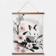 Minimalist Zen Ink Bunny Cherry Blossoms Hanging Tapestry