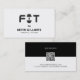 Simple black and white background personal trainer template. This modern minimalistic design comes with-Fit-with barbell and QR code.