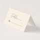 Whimsical minimalistic modern, light beige background, customisable black script calligraphy, elegant wedding place escort card design. The pale beige with customisable black typography evokes a feel of classic elegance.