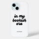 A minimalistic, black and white "in my bookish era" phone case for book lovers. Personalise this item with your name, initials, or custom text at the bottom of the case. Feel free to change the colour of the phone case by clicking on "personalise this design," then "edit using design tool." If you need help making any changes, please message the designer.