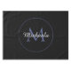 Minimalistic blue circle modern monogram with blue initial and white name on black. Personalizable custom name with a serif initial behind on a black colour.