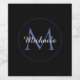 Minimalistic blue circle modern monogram with blue initial and white name on black. Personalizable custom name with a serif initial behind on a black colour.