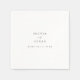 A minimal and elegant wedding themed napkin, designed in black and white, with modern typography, and some script lettering. Personalise with your names, wedding location, and date. Feel free to edit further, such as changing background colours, text colours, etc., by clicking on "personalise this design," then "edit using design tool."