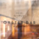This minimalistic window cling features art deco style fonts in a dark gray color.