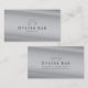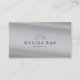 This minimalistic business card features art deco style fonts and a dark gray background.