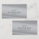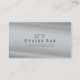 This minimalistic business card features art deco style fonts against a silver/gray background.