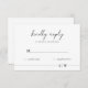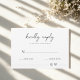 Add a touch of sophistication to your event with our Minimalistic Design RSVP Card. Featuring a sleek and modern design, this elegant response card is perfect for any occasion. Customise with your event details to make it uniquely yours. Ideal for weddings, parties, and formal events, this RSVP card ensures your guests respond in style. Embrace simplicity and elegance with this beautifully crafted design.