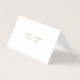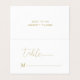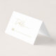 Whimsical minimalistic modern, white background with customisable gold script calligraphy, elegant wedding place escort card design. The white background with customisable gold typography evokes a feel of classic gold-and-white elegance.